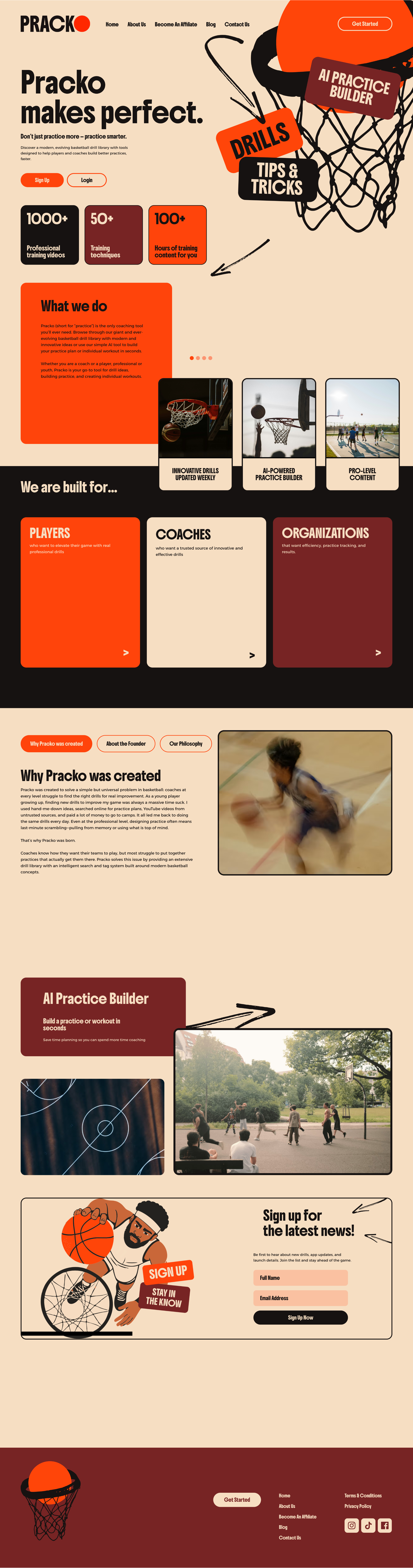 Pracko is a basketball training platform built to help players and coaches design better practices through an evolving library of drills, videos, and planning tools. The Influx team partnered with Pracko to develop a website that clearly communicates the product while capturing the energy and culture of modern basketball training.